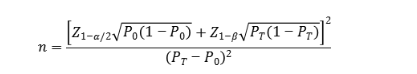 上述公式中,n为样本量;Z1-α/2、Z1-β为显著性水平和把握度的标准正态分布的分数位,P0为评价指标的临床可接受标准,PT为试验体外诊断试剂评价指标预期值。