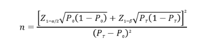 应针对所有标志物(如适用)分别估算阳性样本量和阴性样本量,建议采用单组目标值法公式,目标值(P0)设定应有合理依据,基因突变或甲基化等核酸标志物检测目标值建议不低于90%。